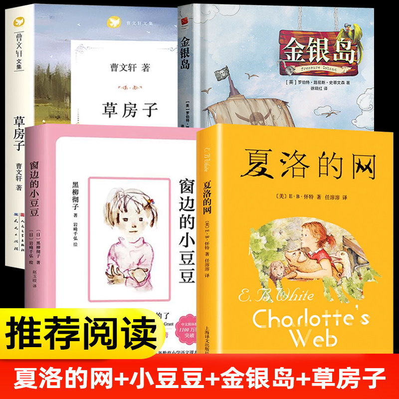全套4册 小学生必读课外书籍 窗边的小豆豆正版书 夏洛的网小学三年级五六 草房子正版曹文轩包邮金银岛 四年级必读经典书目畅销书
