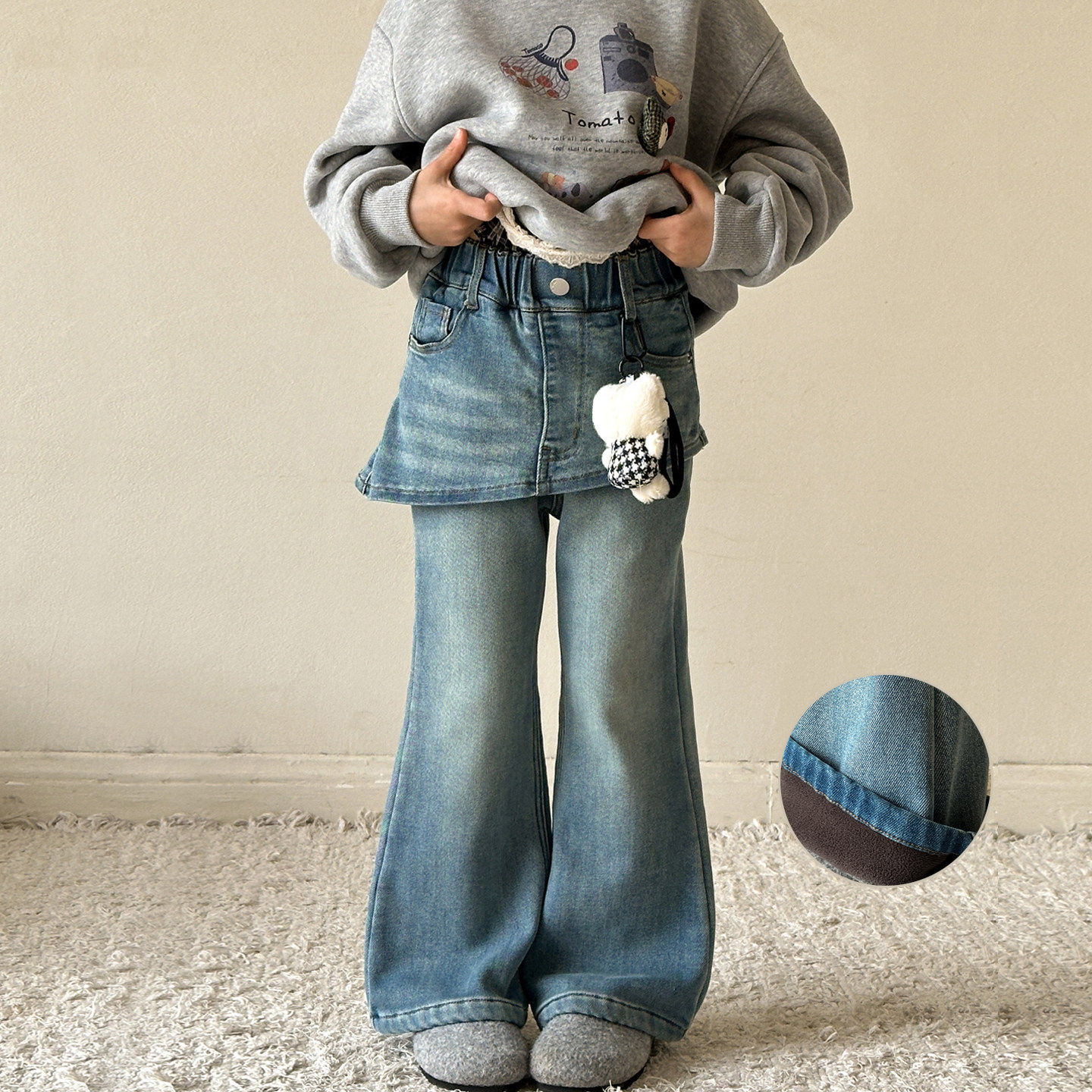 女童加绒牛仔裤2026冬季新款儿童加厚一体绒裤子女大童屁帘阔腿裤