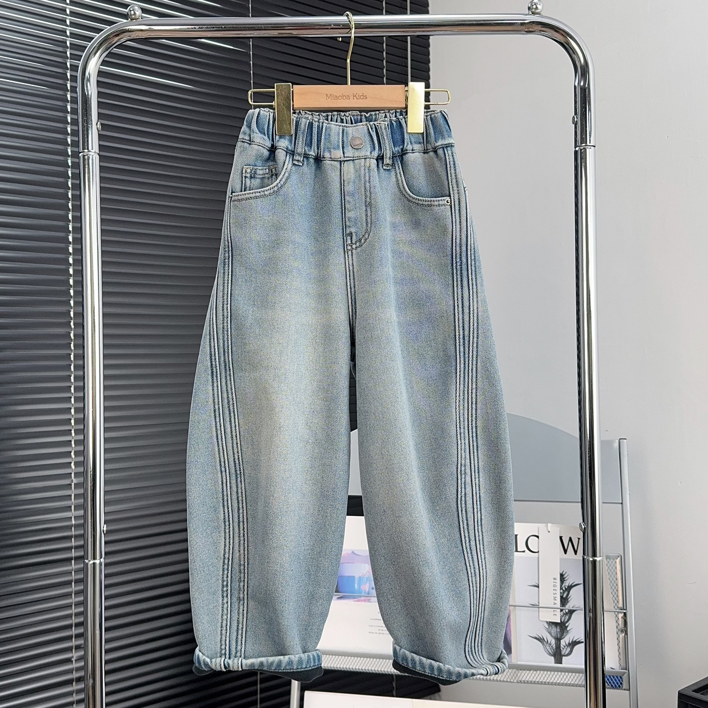 大E小e童装男女童加绒牛仔裤2025冬季中大童加厚裤子儿童长裤8732