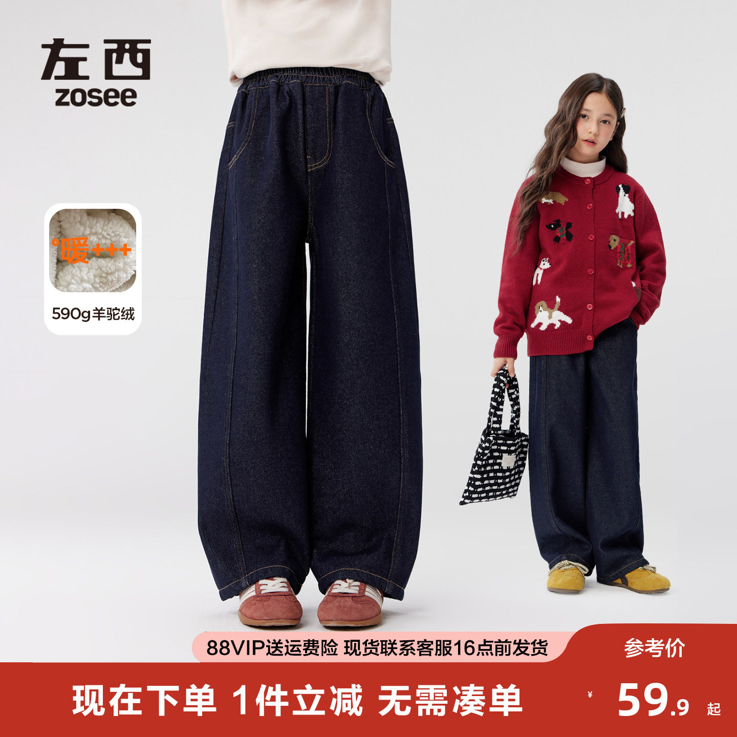 左西女童加绒加厚牛仔裤冬季保暖2026新款儿童长裤中大童冬装裤子