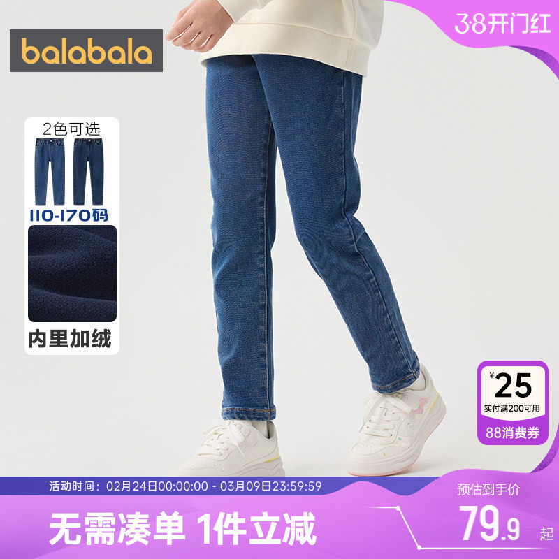 巴拉巴拉女童加绒牛仔裤中大童宝宝加厚裤子秋冬新款童装儿童长裤