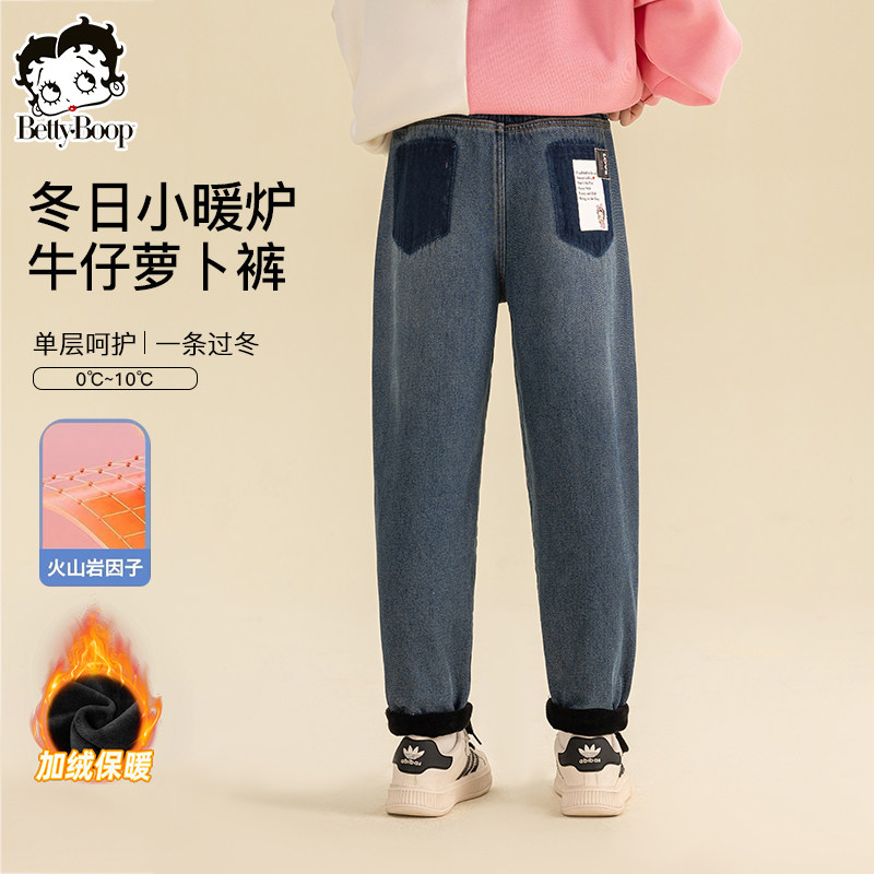 贝蒂女童加绒加厚裤子冬季洋气牛仔裤2026秋冬新款女大童时髦长裤