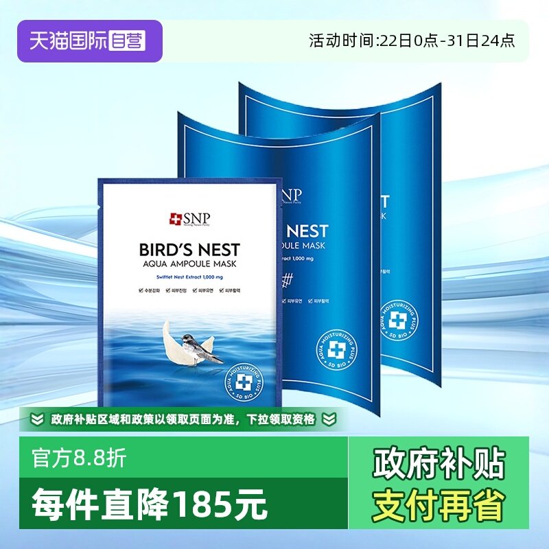 【自营】韩国SNP燕窝补水面膜保湿修护安瓶精华贴片10片进口正品