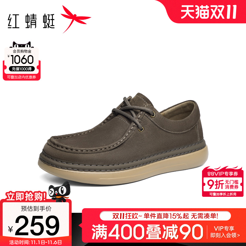 红蜻蜓男鞋秋季2025新款真皮男士休闲皮鞋男百搭简约豆豆鞋通勤
