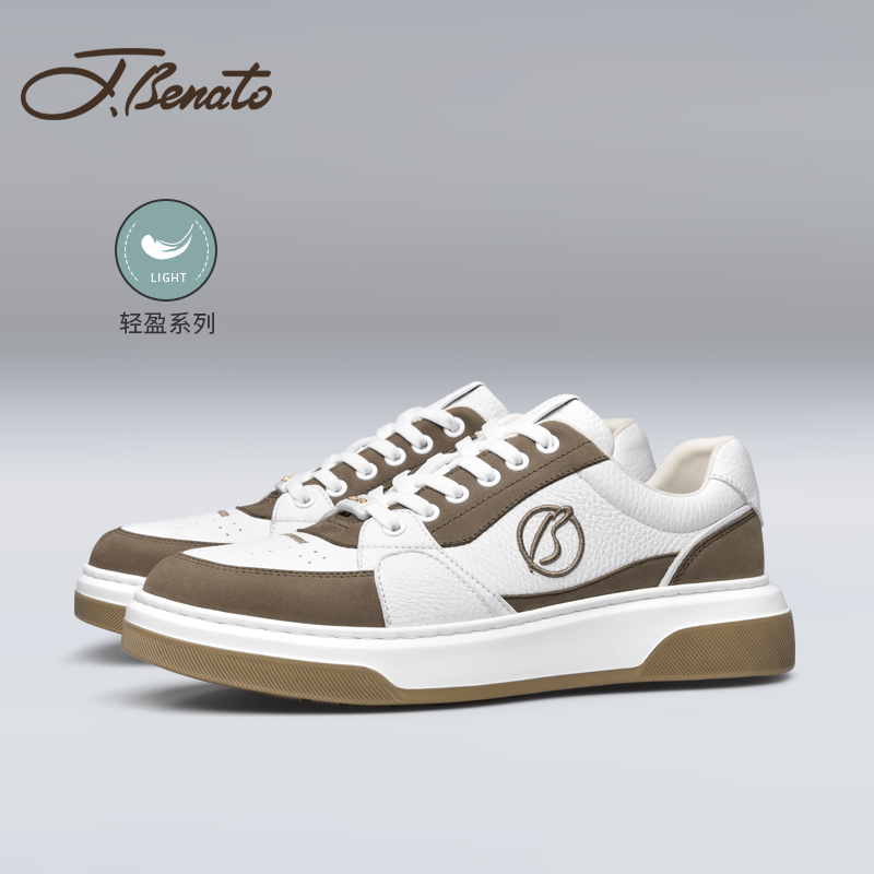 jbenato宾度男鞋秋冬季男士休闲皮鞋男真皮减震气垫运动鞋专柜款