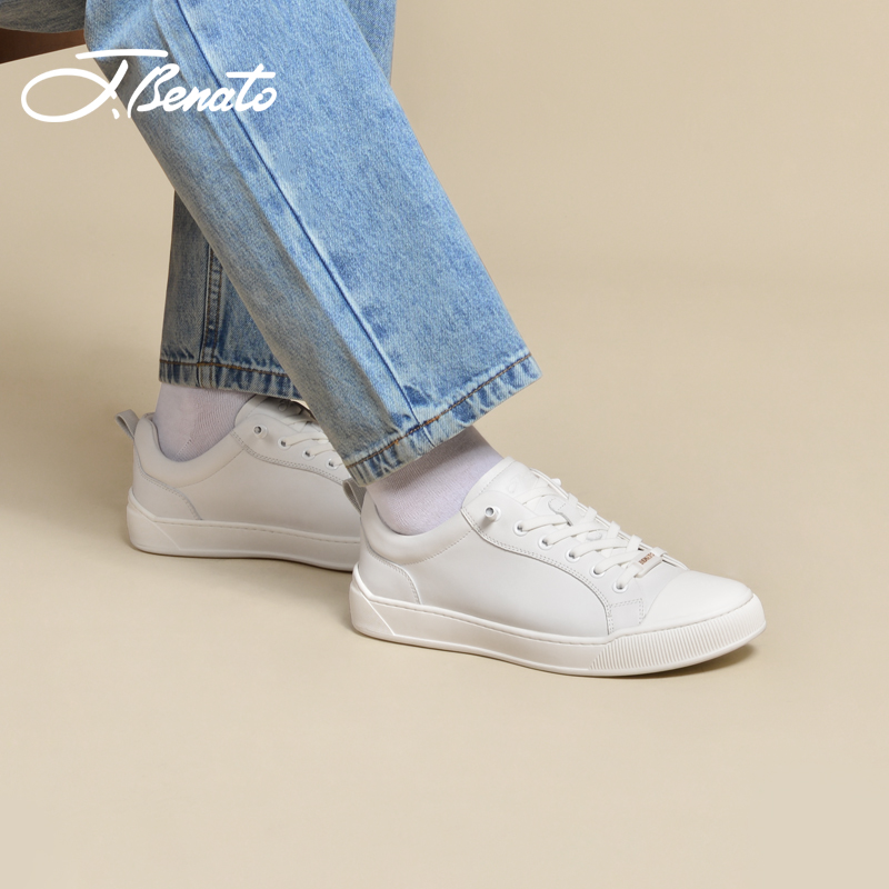 jbenato宾度男鞋秋冬季男士休闲皮鞋男小白鞋真皮时尚百搭板鞋