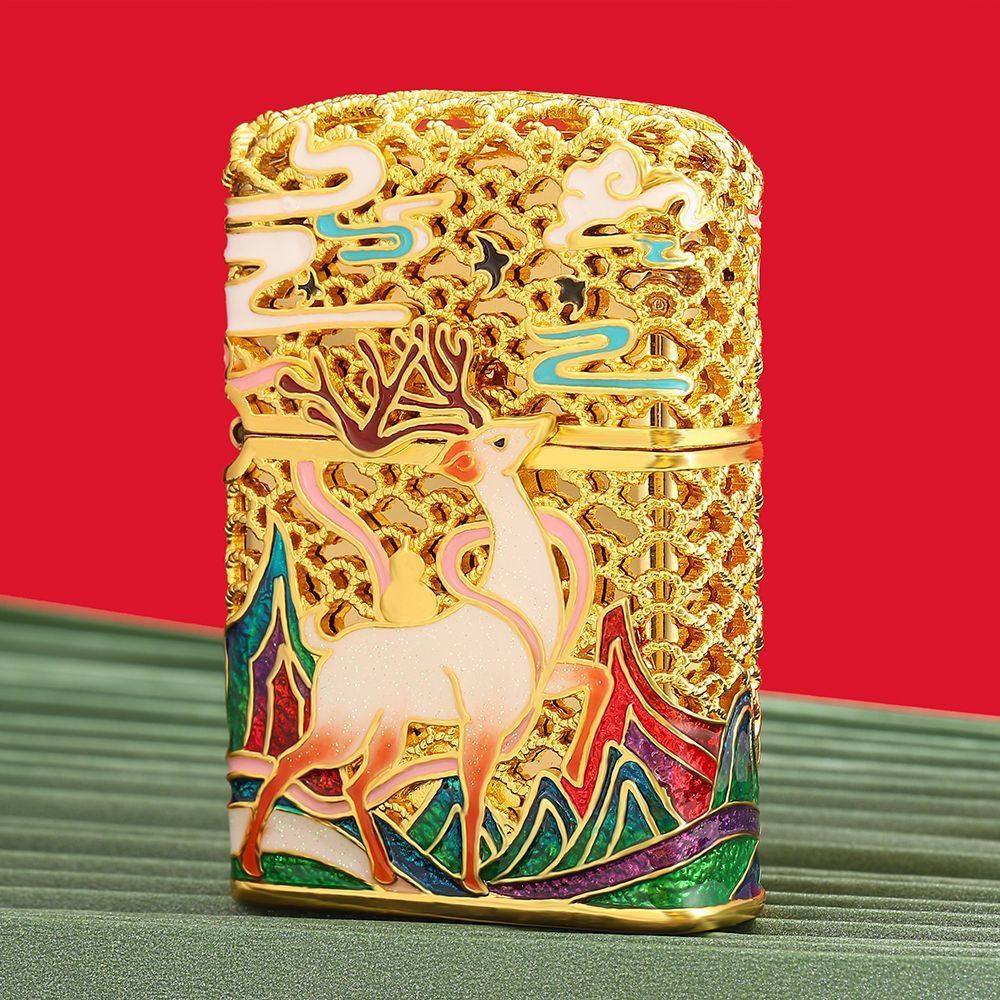 福鹿东升煤油打火机珐琅彩国潮创意防风个性砂轮送人好友父亲礼品