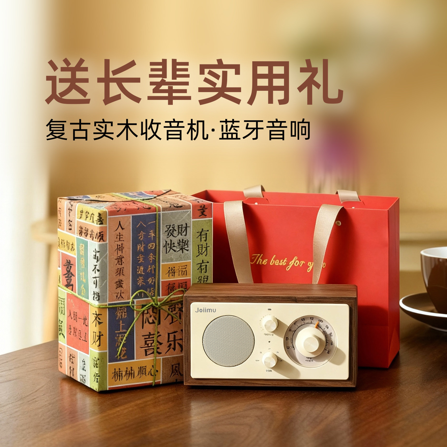 送长辈礼物实用黑胡桃实木收音机蓝牙音响送礼物礼品包装父亲礼品