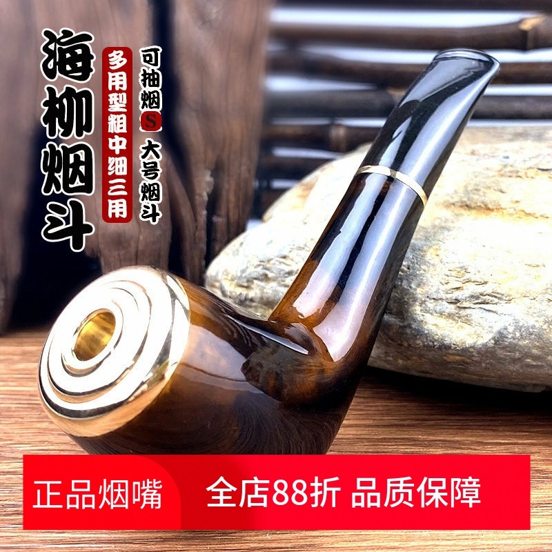 亿辉海柳烟嘴粗中细多用型烟斗牛角循环过滤烟咝斗弯男士父亲礼品