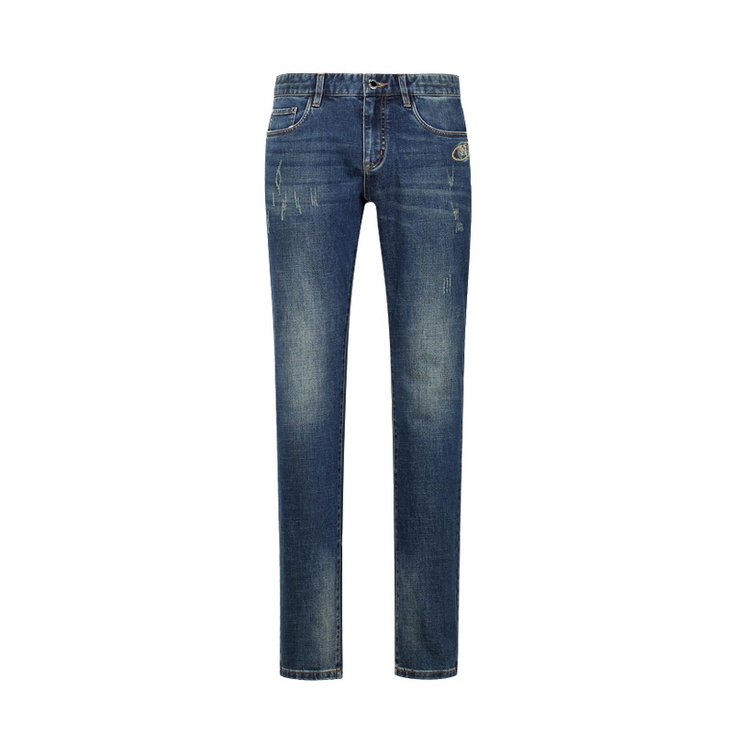 SK男士修身牛仔裤蓝色磨皮百搭微弹长裤子2024年秋冬新款父亲礼品