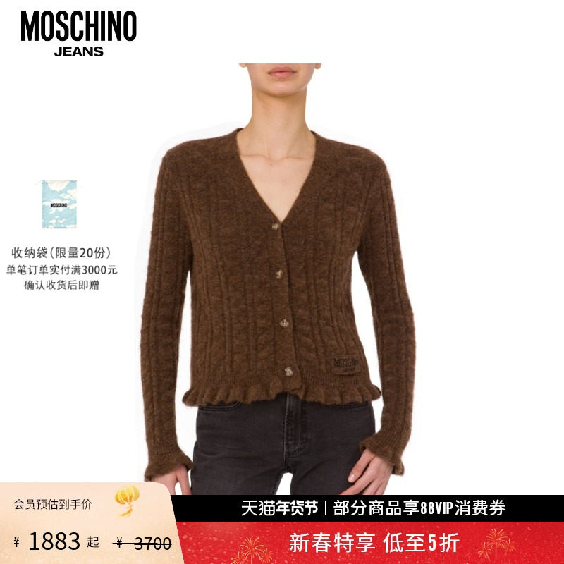 【礼物会员5折起】Moschino Jeans女士羊毛混纺针织开衫修身毛衣