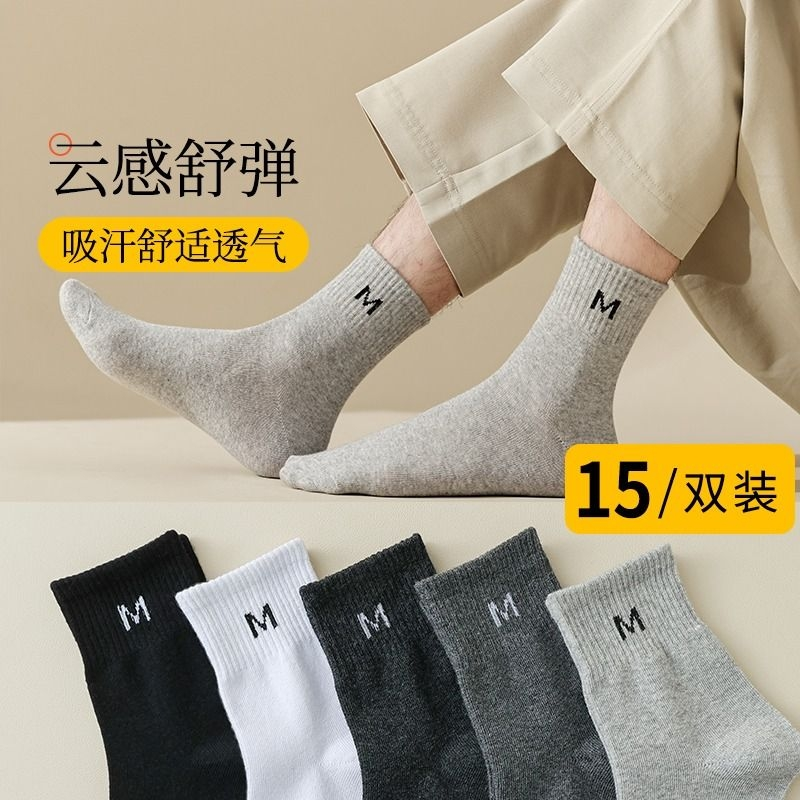 袜子男士男款春夏季短袜中筒袜新款运动袜防臭吸汗男生黑白色袜子