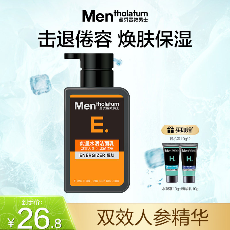 曼秀雷敦男士专用洗面奶保湿护肤品能量水活洁面乳深层清洁旗舰店