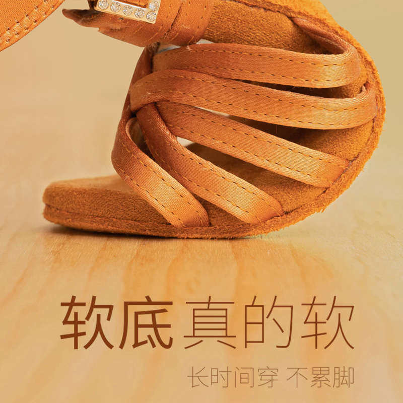 红谛莎女士拉丁舞鞋缎面软底恰恰比赛考级女孩成人高跟新款舞蹈鞋