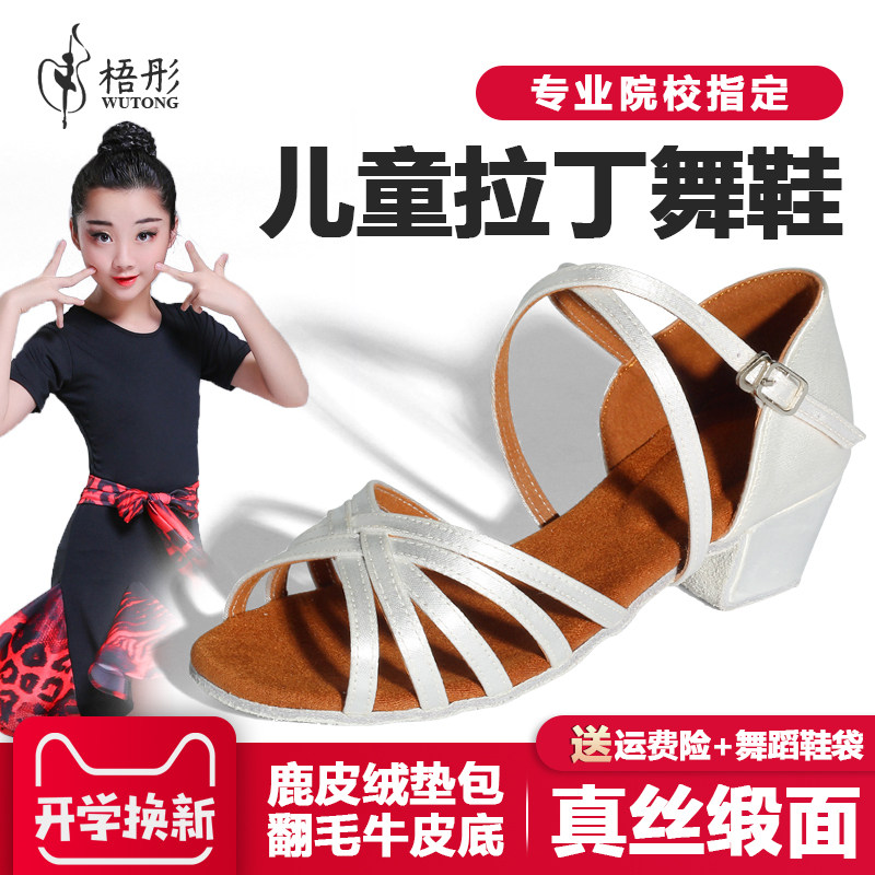 梧彤专业女孩拉丁舞鞋儿童软底舞蹈鞋女童跳舞鞋少儿考级初学者夏