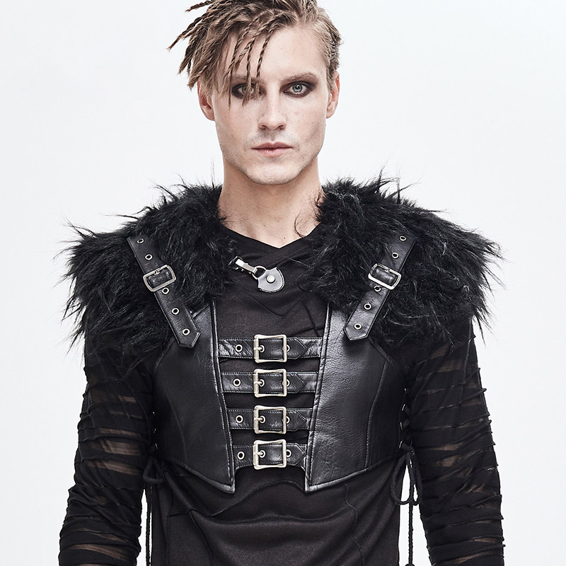 男式毛披肩皮马甲青年休闲朋克摇滚短马夹背心万圣节cos装饰服饰