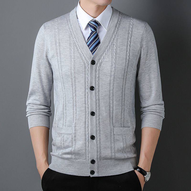中青年提花保暖男式毛背心2025秋冬男士有口袋长袖含品质毛衣开衫