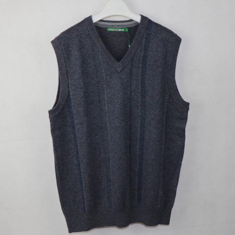100%纯羊毛秋冬爸爸装针织衫坎肩中老年人毛衣马甲男式套头衫背心