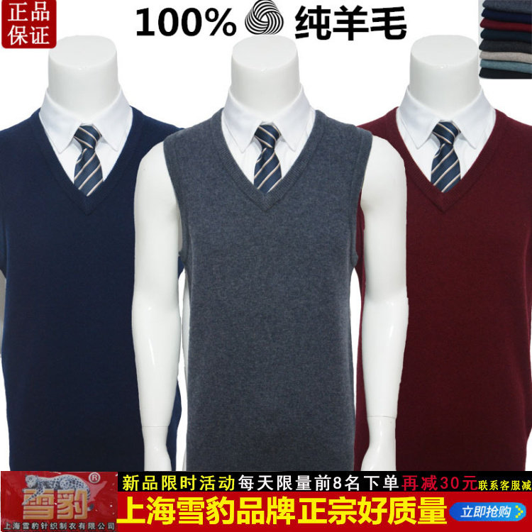 雪豹男士背心鸡心领羊毛衫马甲霸虎新竹男式V领坎肩羊毛背心厚款