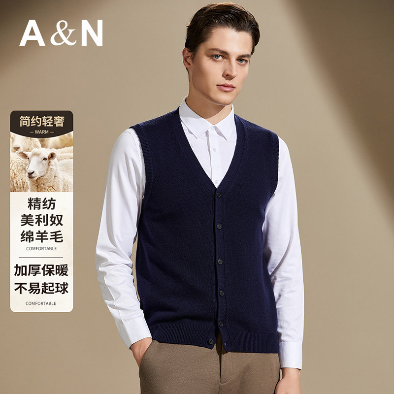 金菊36支3股【100%绵羊毛】25秋冬新款简约V领男式羊毛背心