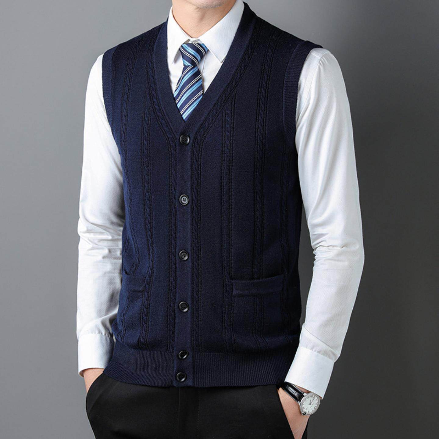 【精纺羊毛不易起球】加厚保暖商务休闲秋冬羊毛背心男式坎肩马甲