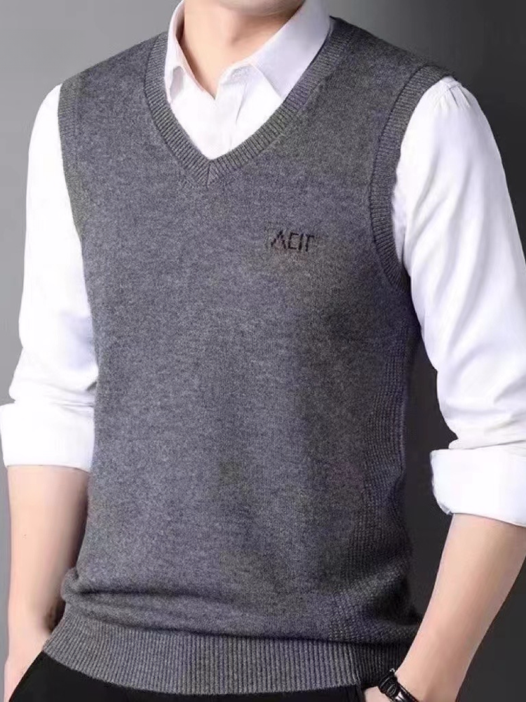秋冬男士羊毛背心V领商务毛背心中老年针织衫马甲男坎肩男式毛衣