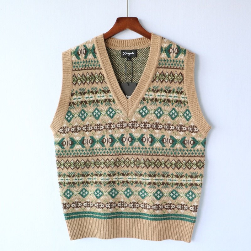 2025秋冬新款羊毛背心男式坎肩加厚款保暖修身时尚休闲花色针织衫
