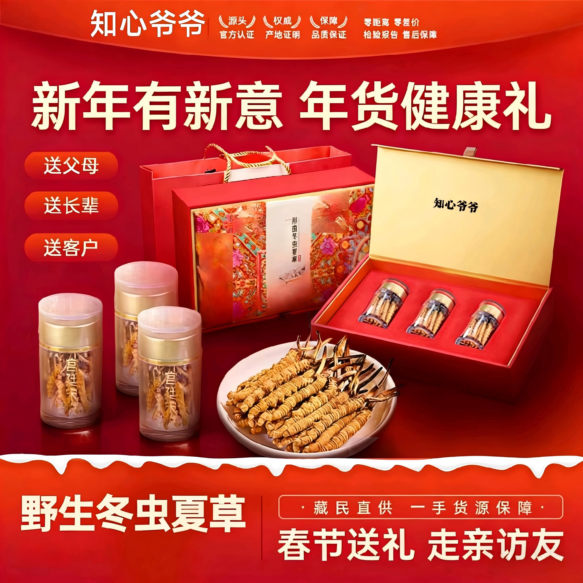 断草冬虫夏草自吃营养滋补品西藏那曲送长辈送父母礼盒装精选虫草