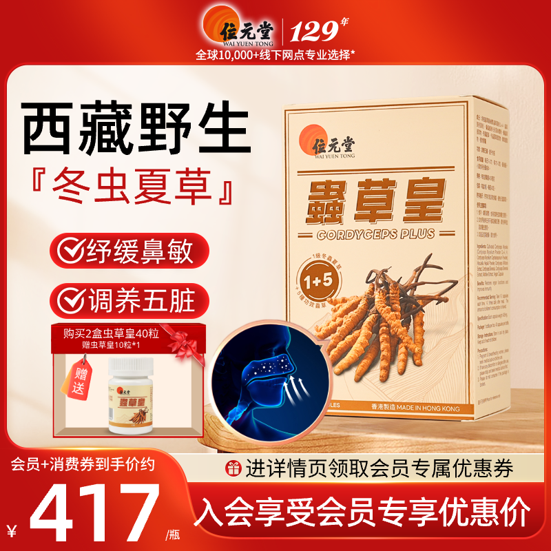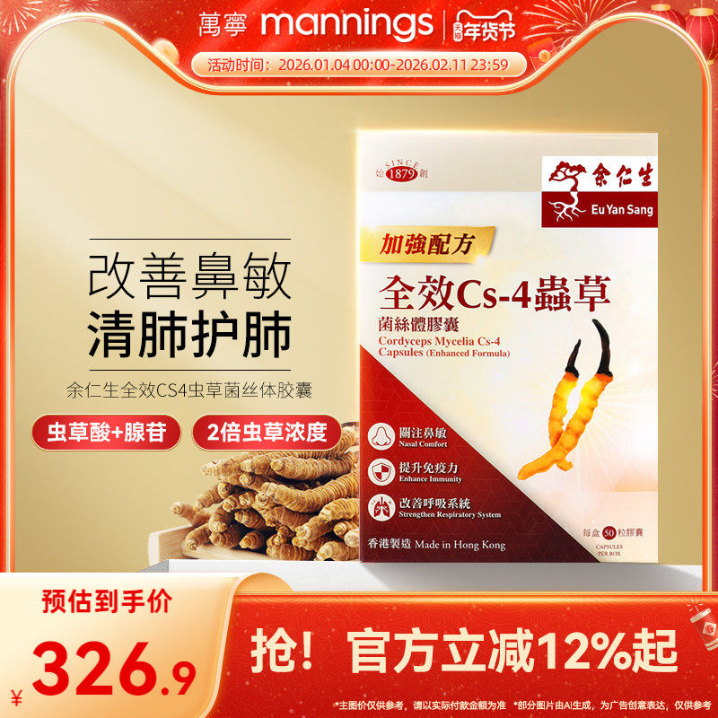 余仁生全效CS-4虫草菌丝体胶囊50粒浓缩精华西藏冬虫夏草保健礼盒