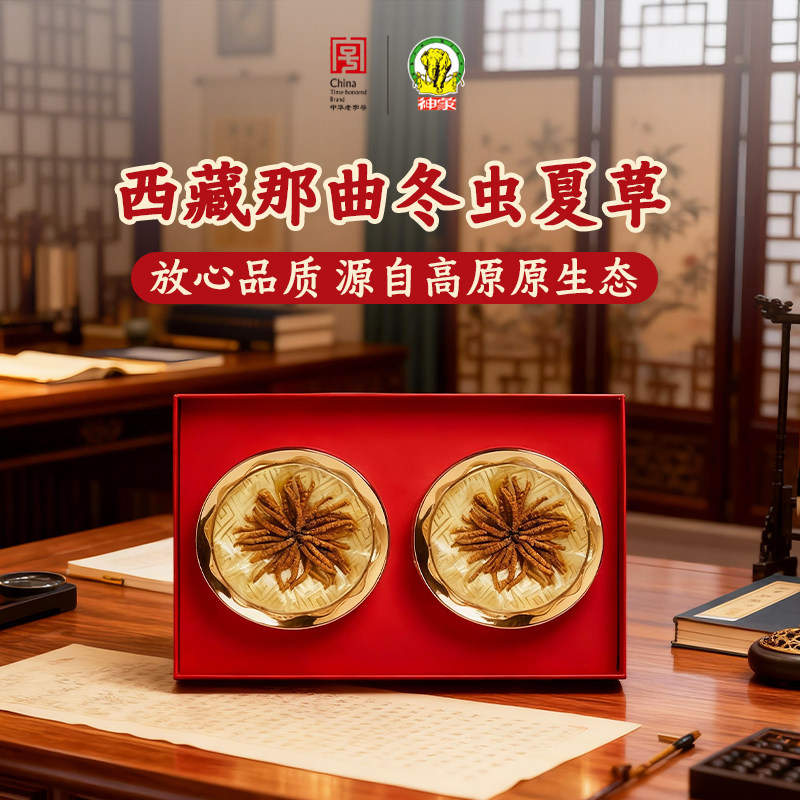上药神象西藏冬虫夏草16克平铺礼盒大草约50-53根送人体面色金黄