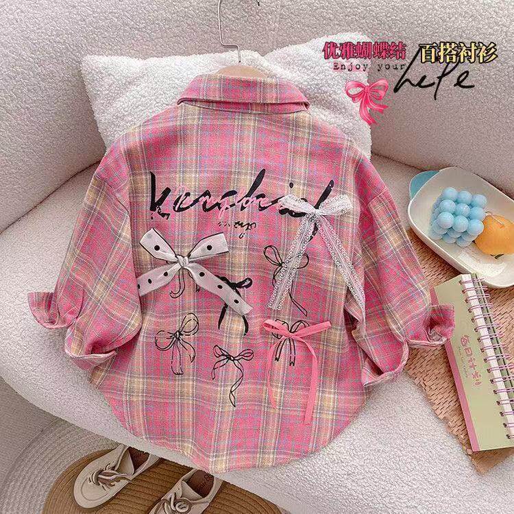 衬衫韩版纯棉时尚格子女童2026春秋新款甜美蝴蝶结长袖女童仙女衫