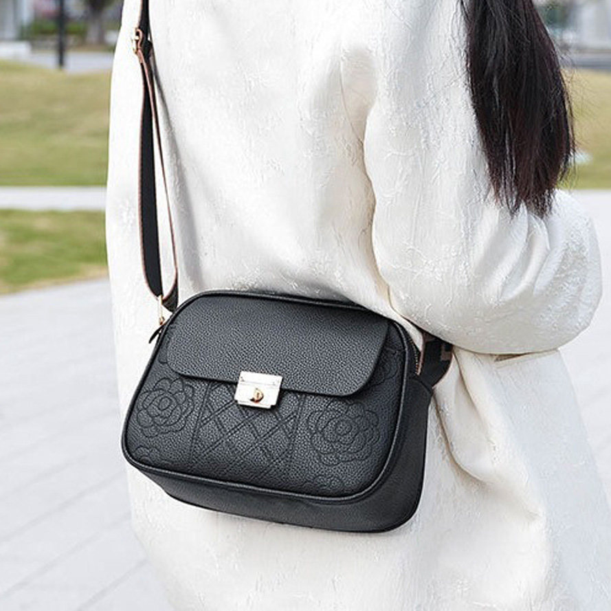 女士三层斜挎包新款印花包包妈妈款多层实用小方包中老年手机挎包