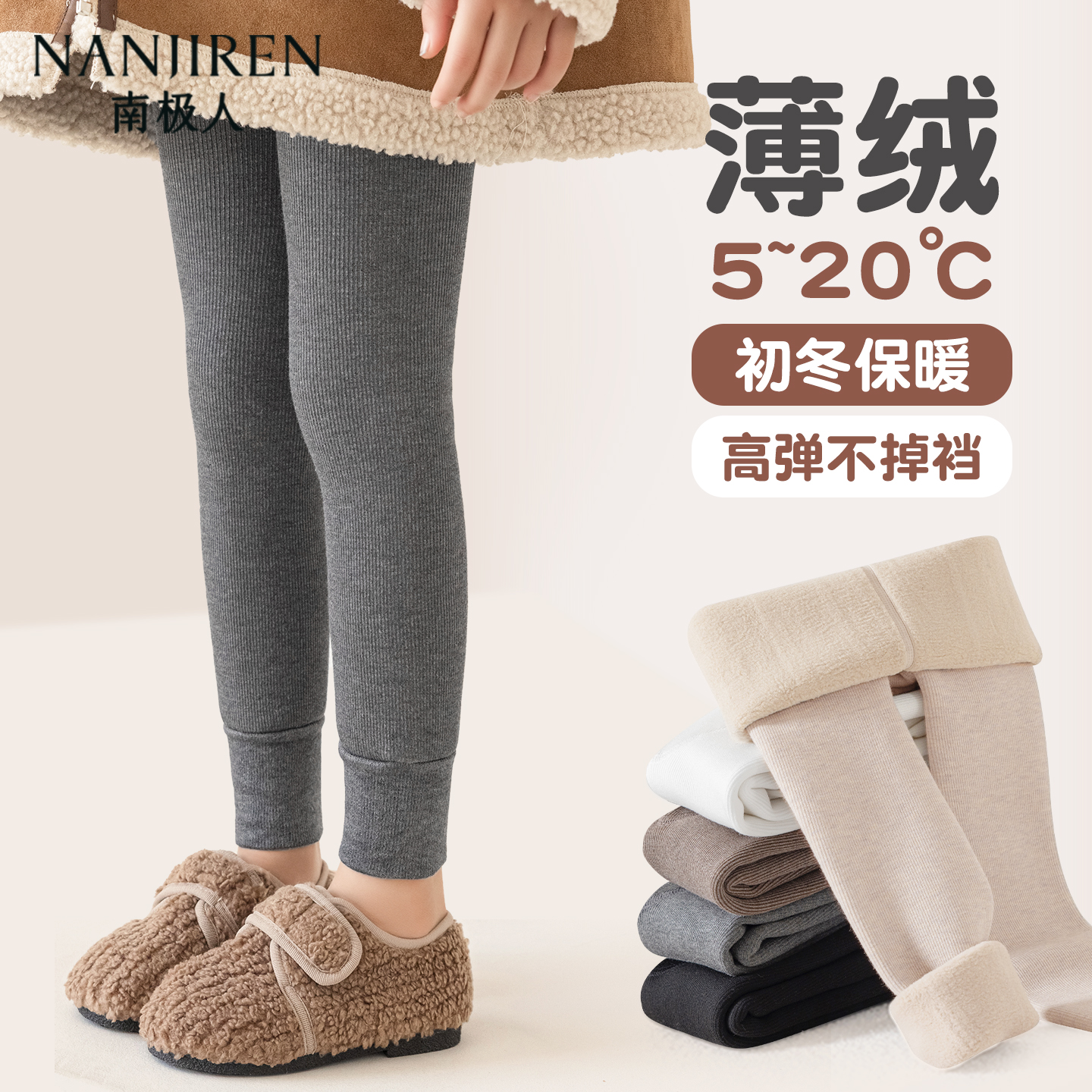 女童打底裤薄绒秋季外穿白色宝宝女孩长裤子秋冬款加绒儿童九分裤