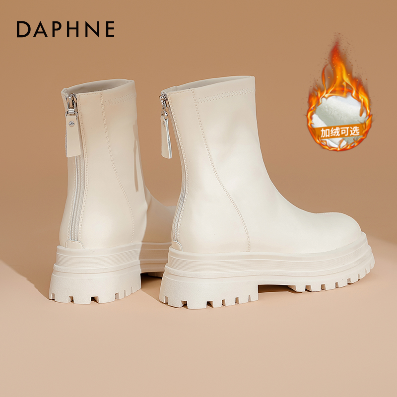 达芙妮短靴女厚底马丁靴女款2025秋冬新款爆款女靴白色厚底靴子女