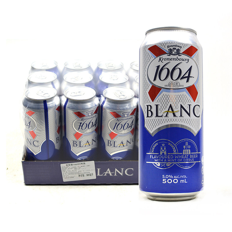 法国原装进口1664小麦白啤酒500ml*24听装整箱柑橘水果味啤酒