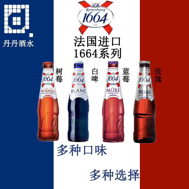 法国进口1664果味啤酒白啤蓝莓玫瑰瓶装250ml法式香味整箱囤货价