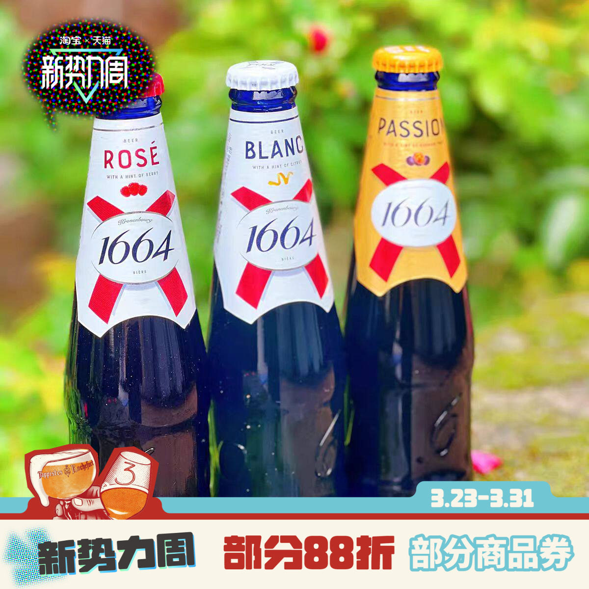 法国进口1664果味啤酒玫瑰百香果味经典小麦白啤酒整箱24瓶组合装