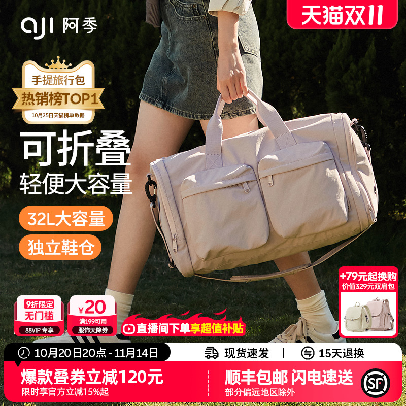 阿季可折叠手提行李袋旅行包女士短途轻便大容量旅游行李箱附加包