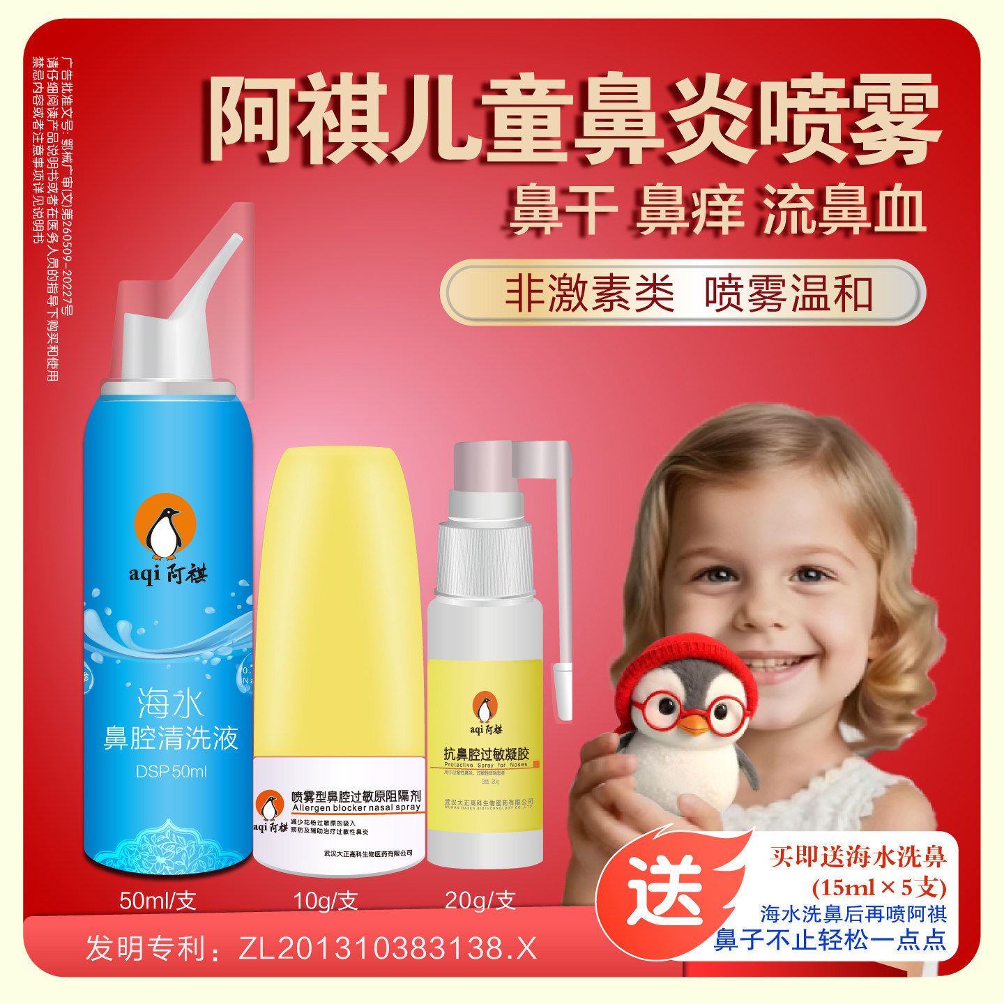 阿祺儿童鼻炎喷雾抗过敏凝胶鼻干燥鼻痛流鼻血黏膜糜烂破损非激素