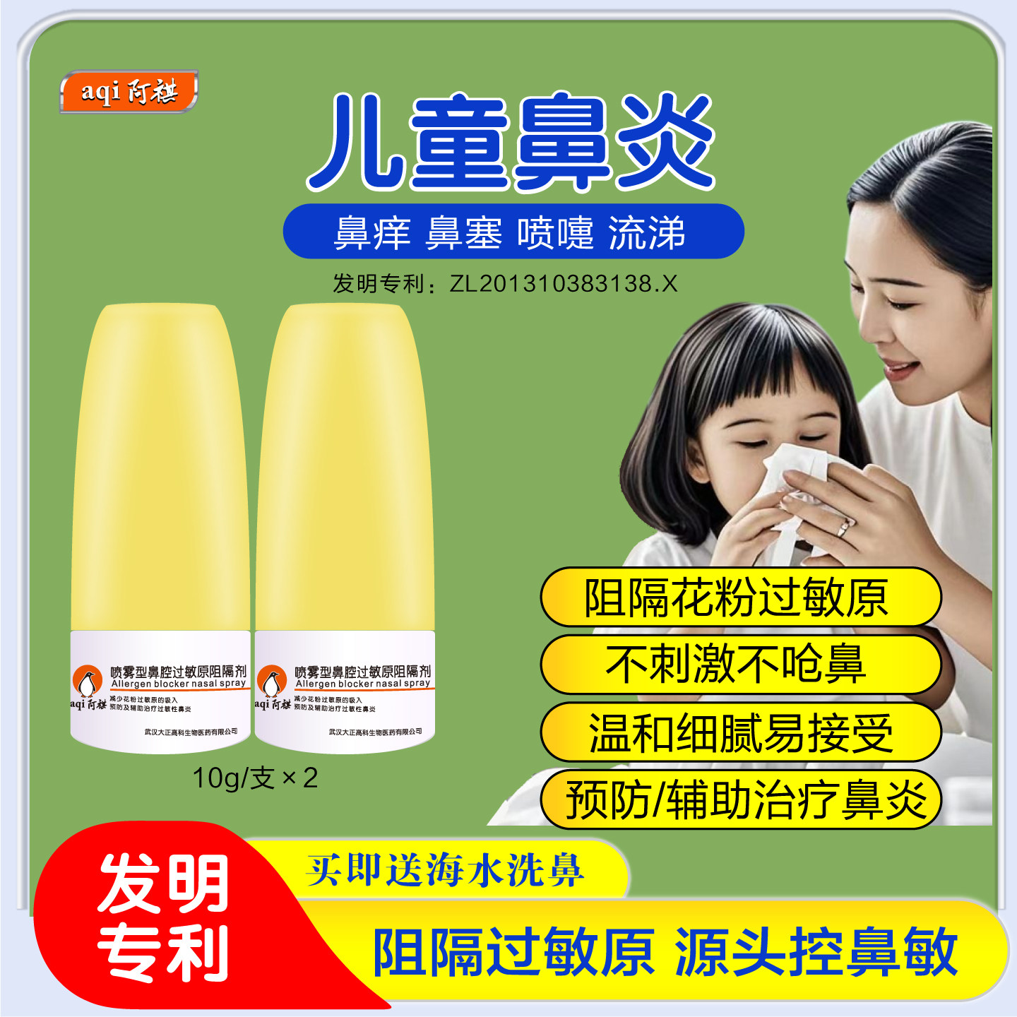 阿祺儿童鼻炎喷雾鼻痒鼻塞喷嚏流鼻涕过敏原阻隔剂鼻腔清洗器套装