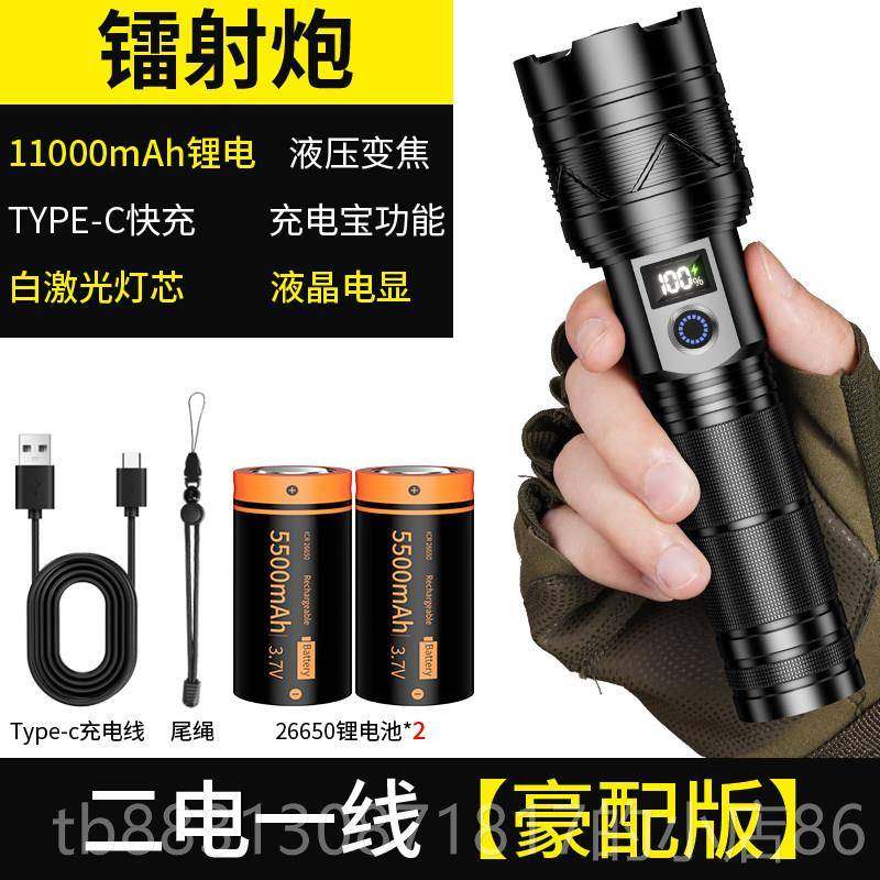 手电筒强光充电超亮户外变焦远射穿天炮超长续航多功能家用便携式