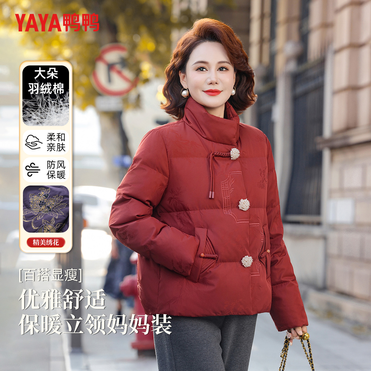 YAYA鸭鸭妈妈款羽绒服2025新款中年女款中长款中老年冬装外套女