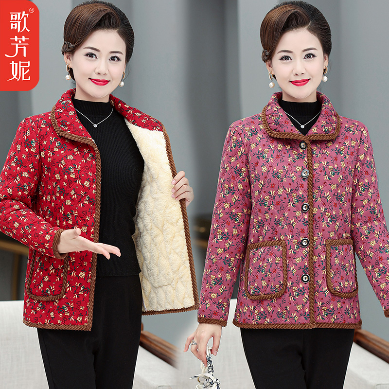妈妈装加绒加厚棉衣外套保暖居家棉服中年女装洋气棉袄中老年冬装