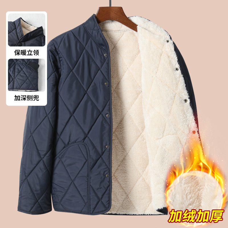 爸爸装加绒加厚棉袄老人外套中年男立领毛内胆中老年冬装棉衣棉服