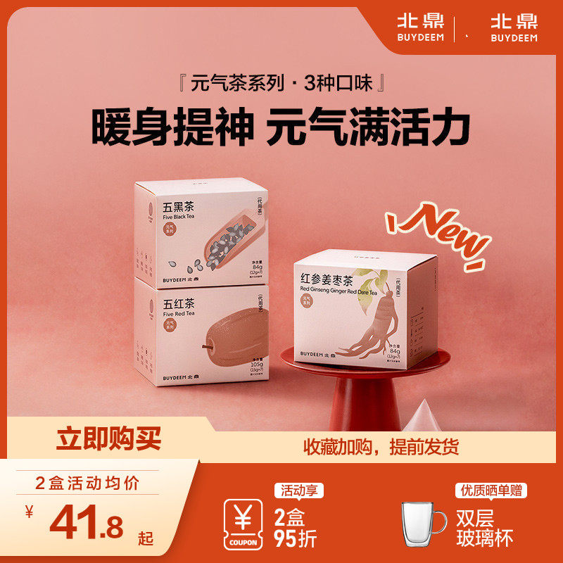 茶颜悦色草本茶黄芪红枣五黑茶黑糖姜枣补气养生茶包品尝装5枚/袋