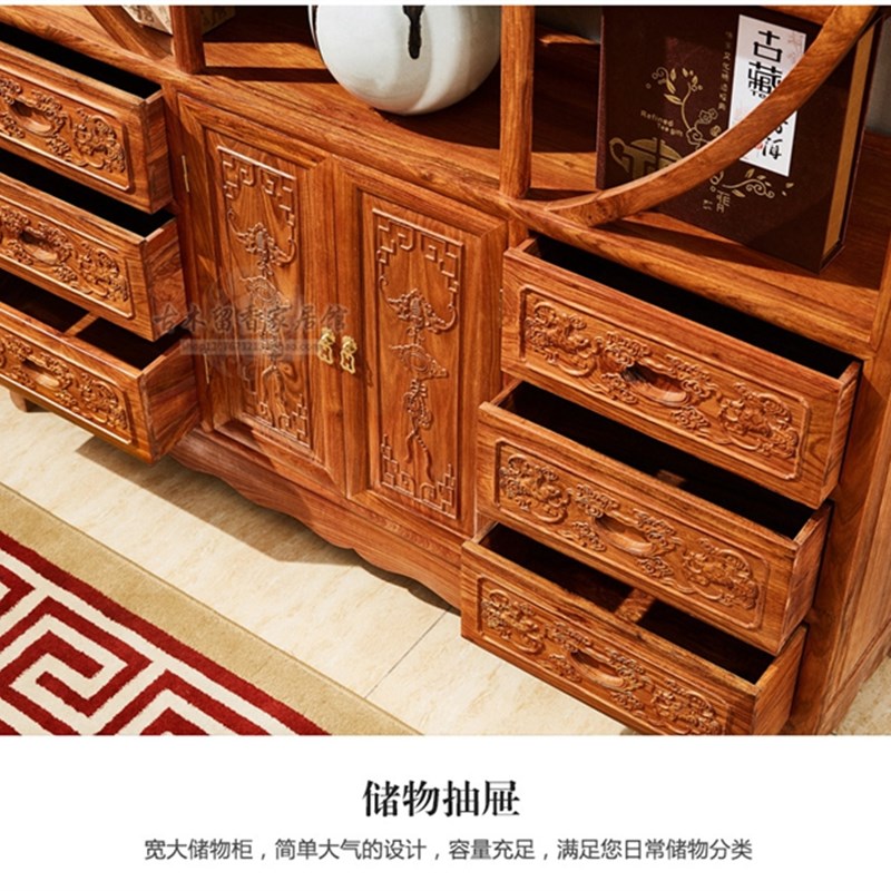 红木家具非洲黄花梨五福博古架刺A猬紫檀多宝阁隔断古董柜中式实