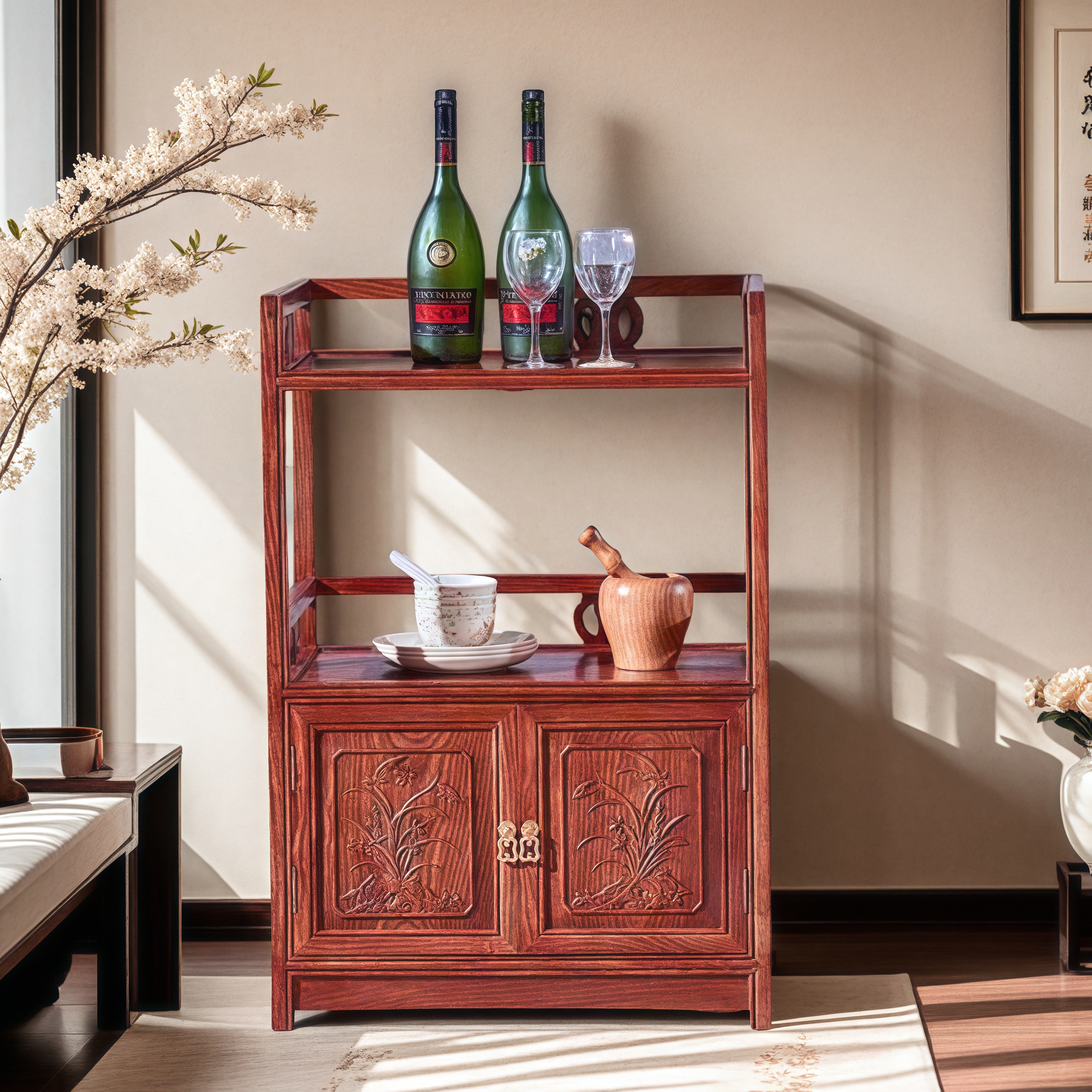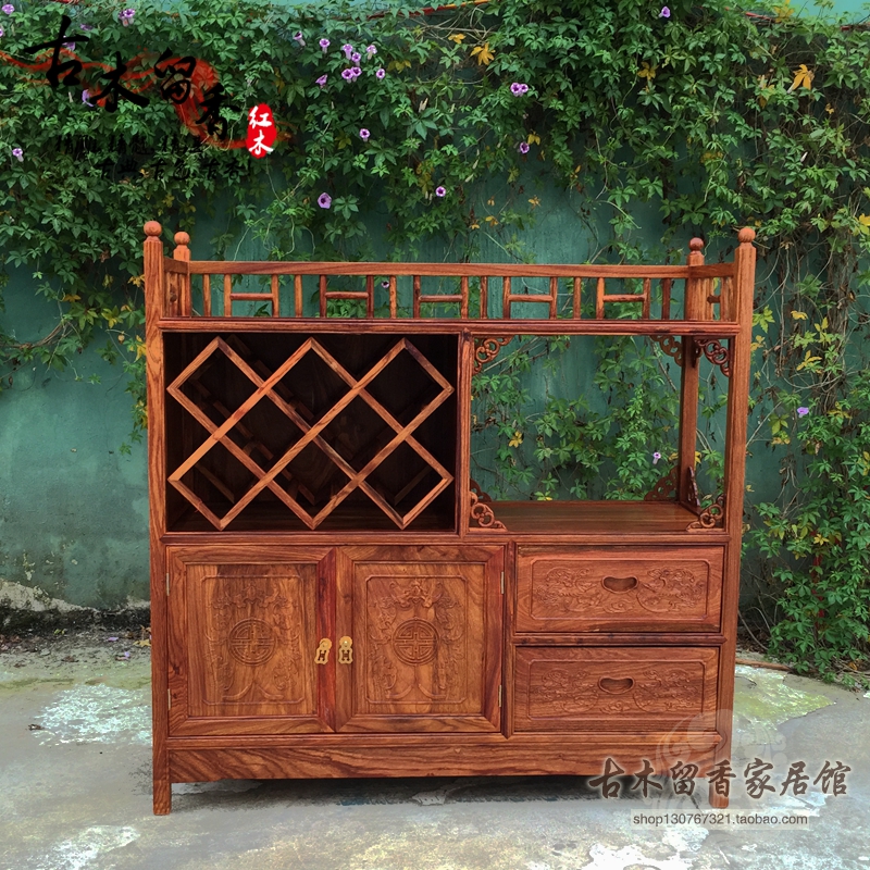 红木古典家具 非洲黄花梨实木 茶水柜 餐边柜 微波炉柜 储物柜
