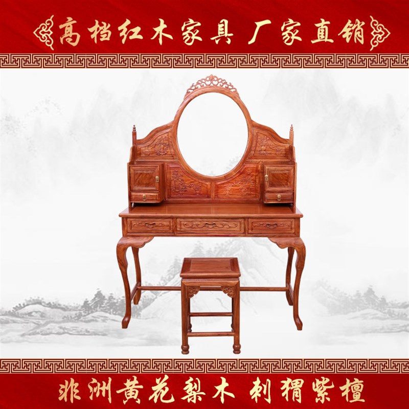 沐林古典红木家具 非洲黄花梨木刺猬紫檀梳妆台 梳妆椅 婚嫁美容