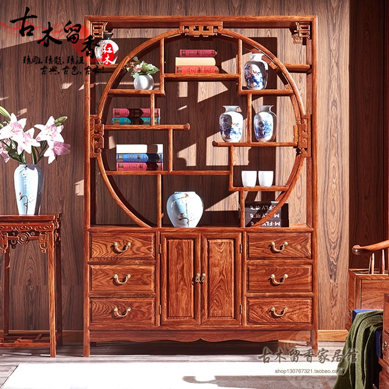 红木家具 刺猬紫檀红酒柜 非洲黄花梨储物柜中式实木隔厅柜茶水柜