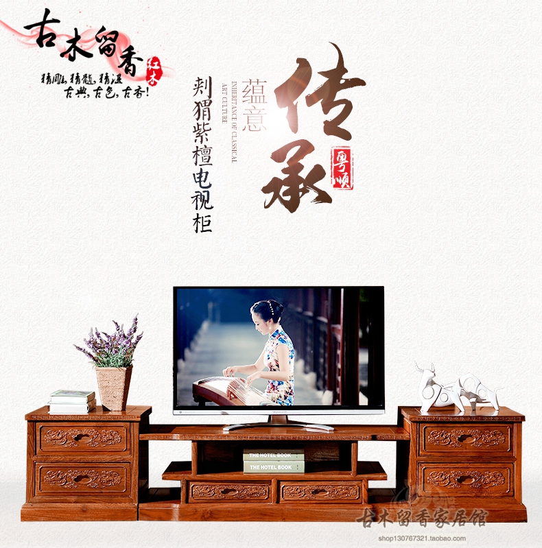 红木家具 非洲黄花梨木 电视机柜刺猬紫檀地柜中式原实木客厅古典